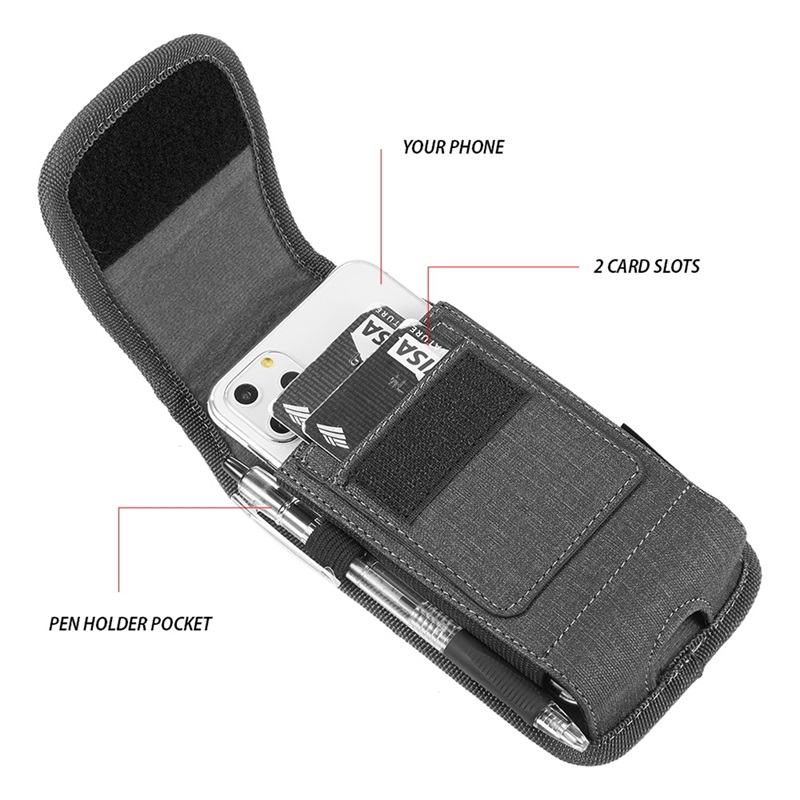 LUXMO Large Vertical Universal Leather Pouch w/ Dual Card Slots - Black