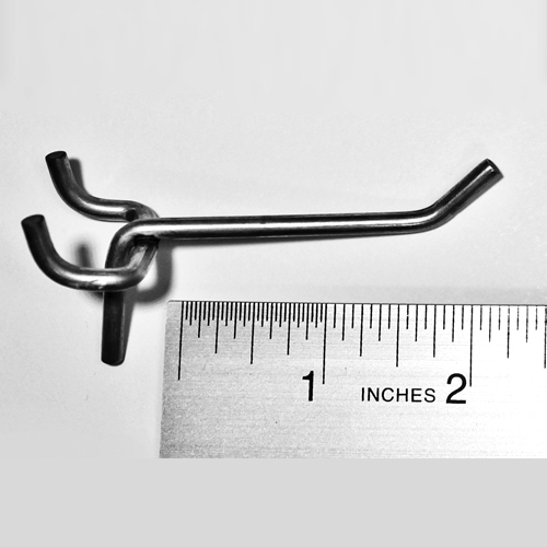 Display your products and merchandise in an eye-catching, organized way, or add versatility to your existing pegboard, and spinner displays with the 2" Chrome Pegboard Hook Kit from MyBat. This set includes 10 hooks that are designed to fit 1/4" pegboards. Each hook features rounded ends and curved tips to prevent items from sliding off. Features: Stainless Steel Fits ¼” Pegboard Displays Includes 10 Pieces