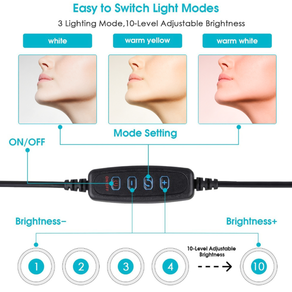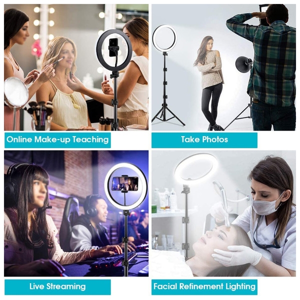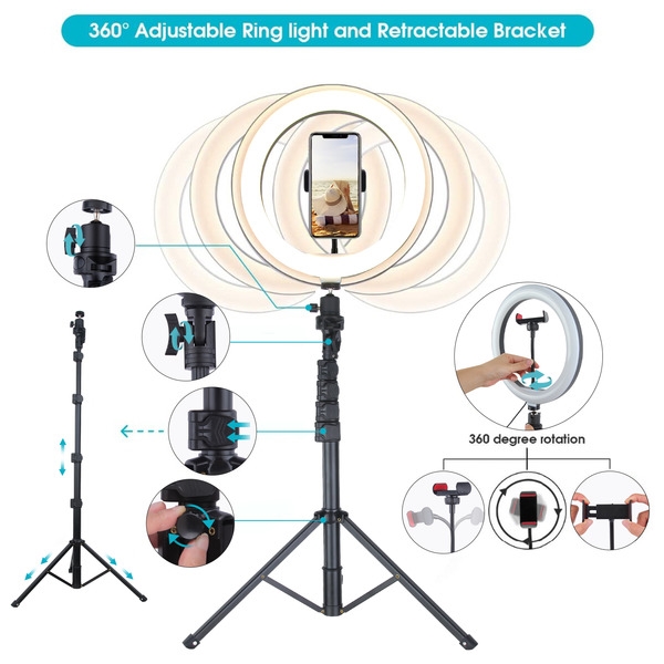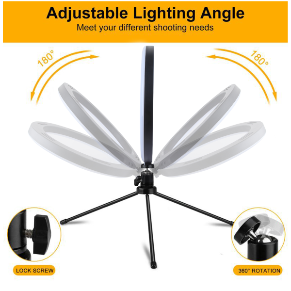 Offer studio-quality lighting, adjustable angles, and an expansive height range to make your customers stand out on social media with the 10" Selfie Ring Light with Tripod Stand from MyBat. With eye-catching packaging, these handy selfie ring lights are sure to fly off the shelves, making them a great addition to your inventory! The Selfie Ring Lights have a 10" diameter, so your customers will have excellent light from every angle! In low lighting and dark environments, your customers can choose from white, warm yellow, and warm white to find the perfect light balance. A built-in remote control lets customers adjust the brightness up to ten levels and switch between lighting modes easily. Powered by USB, the Ring Light is easily plugged into power banks, laptops, and other USB devices. Featuring tripod stands ranging from 17 to 60 inches in length, a tabletop tripod, and rotating phone clips that tilt 180 degrees, customers will capture the perfect shot every time. MyBat offers a limited one-year warranty for the10” Selfie Ring Light with Tripod Stand, ensuring the best quality, performance, and customer satisfaction. Features: 2-in-1 Design Ring Light & Selfie Tripod 360° Rotatable Phone Clip 180° Adjustable Tilt Telescopic Range: Extends Up To 60” 3 Lightning Color Modes 10-Level Brightness Adjustments Built-In Remote USB Powered Travel-Friendly Ultra-Lightweight & Compact 1-Year Warranty