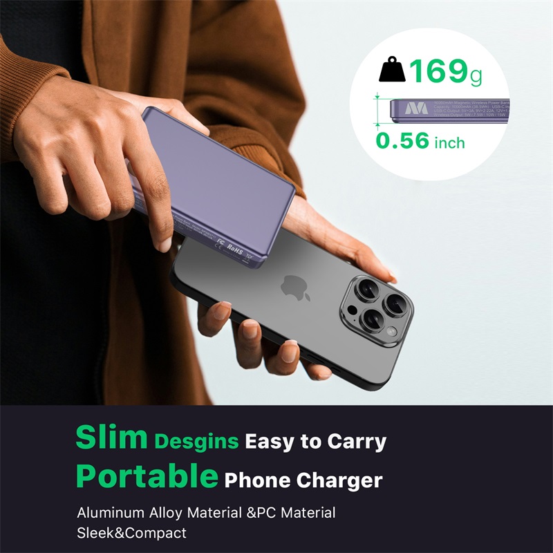 MyBat 10000mAh SNAP + GO SLEEK Magnetic Wireless Power Bank - Purple Titanium