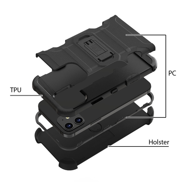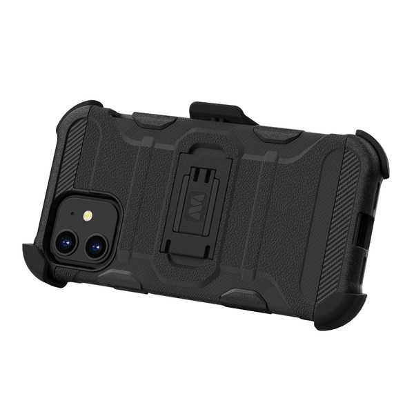 MyBat 3-in-1 Storm Tank Hybrid Protector Case Combo (with Black Holster)(Tempered Glass Screen Protector)[Military-Grade Certified] for Apple iPhone 12 mini (5.4) - Black / Black