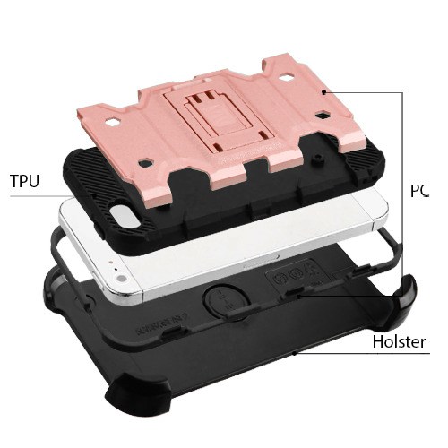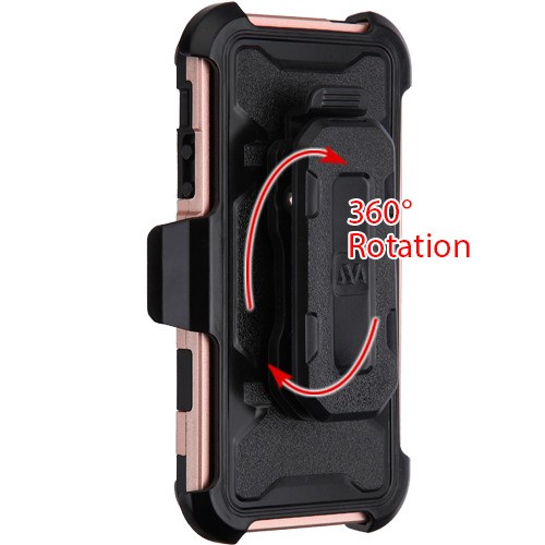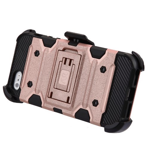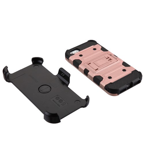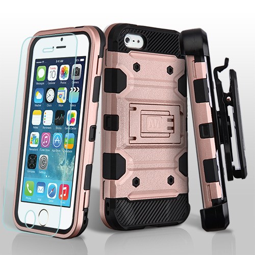MyBat 3-in-1 Storm Tank Hybrid Protector Cover Combo (with Black Holster)(Tempered Glass Screen Protector)[Military-Grade Certified] for Apple iPhone 5s/5 / SE - Rose Gold / Black