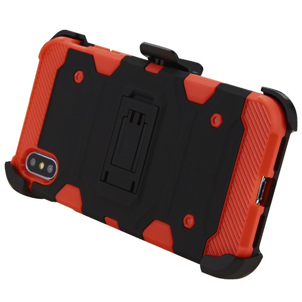 MyBat 3-in-1 Storm Tank Hybrid Protector Cover Combo (with Black Holster)(Tempered Glass Screen Protector)[Military-Grade Certified] for Apple iPhone XS Max - Black / Red