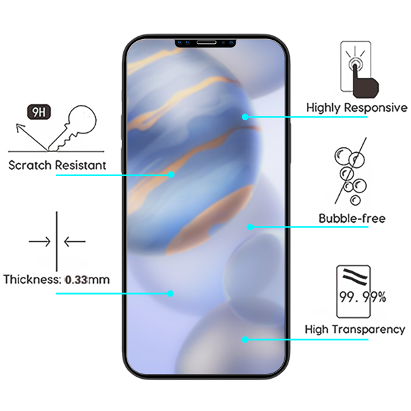 0.3mm thick premium-grade tempered glass screen protector provides maximum image clarity and ultimate touch screen sensitivity. 9H hardness scratch-resistant surface provides high resistance to shock, impact and damages from sharp objects. Polished, rounded-edge design offers a smooth feel to the perimeter while providing ultimate impact protection to the screen. Shatterproof technology keeps the user and phone safe from scratches and damages if broken. Oleophobic coating prevents excessive fingerprints and oil stains from contaminating the surface, making it easy to clean. Simple application adhesive allows bubble-free installation that is perfectly flat and spotless every time. Durable tempered glasses + the alignment equipment give you a smooth installation experience.