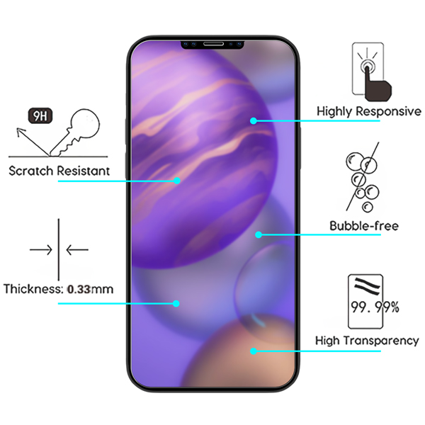 0.3mm thick premium-grade tempered glass screen protector provides maximum image clarity and ultimate touch screen sensitivity. 9H hardness scratch-resistant surface provides high resistance to shock, impact and damages from sharp objects. Polished, rounded-edge design offers a smooth feel to the perimeter while providing ultimate impact protection to the screen. Shatterproof technology keeps the user and phone safe from scratches and damages if broken. Oleophobic coating prevents excessive fingerprints and oil stains from contaminating the surface, making it easy to clean. Simple application adhesive allows bubble-free installation that is perfectly flat and spotless every time. Durable tempered glasses + the alignment equipment give you a smooth installation experience.