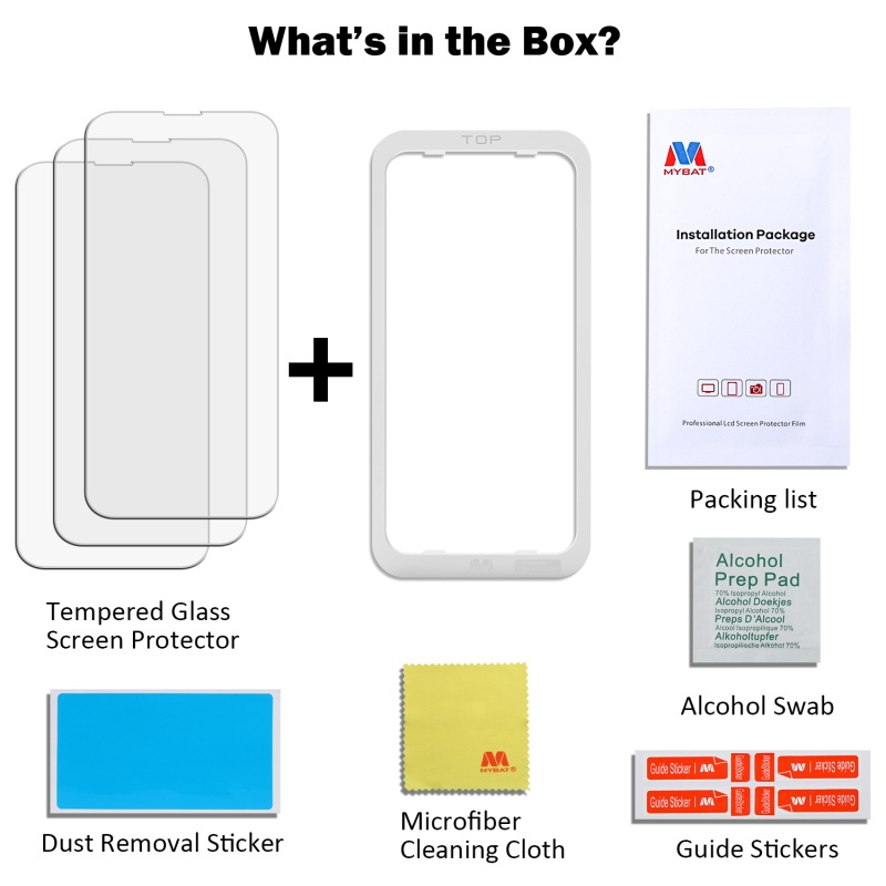 MyBat (3 Pack)Tempered Glass Screen Protector with Installation Frame for Apple iPhone 13 mini (5.4) - Clear