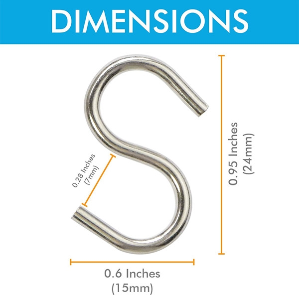 Use the 1” S-Hook from MyBat to hang display strips, signs, or merchandise from shelving or wire fixtures! It also is ideal for using with various ceiling connectors and linking signs together. This set of 100 hooks fits a 0.8” diameter wire. Each hook features rounded ends and curved tips to prevent items from sliding off. Features: Stainless Steel Fits 0.8” Diameter Wire Includes 30 Pieces
