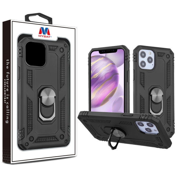 MyBat Anti-Drop Hybrid Protector Case (with Ring Stand) for Apple iPhone 12 Pro Max (6.7) - Black / Black