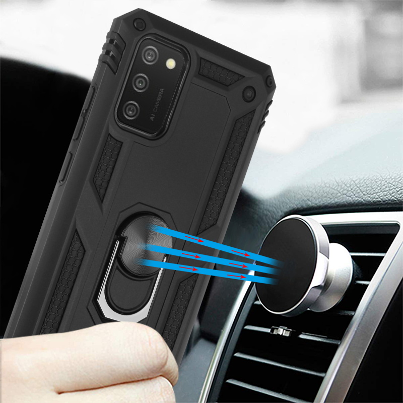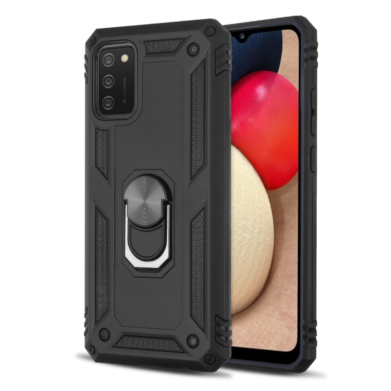 MyBat Anti-Drop Hybrid Protector Case (with Ring Stand) for Samsung Galaxy A02s - Black / Black