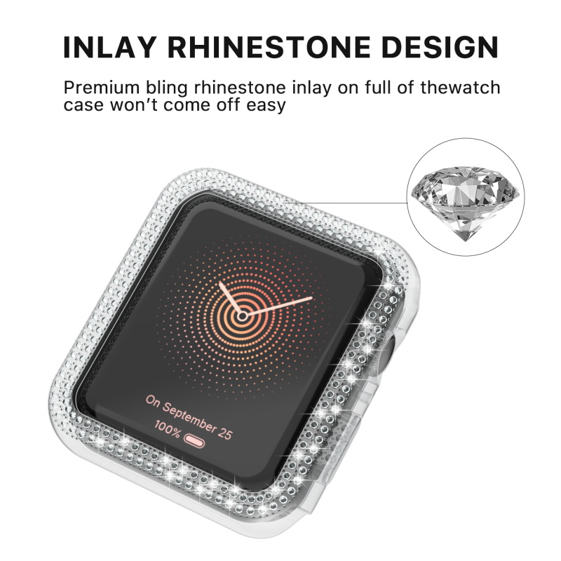 MyBat Apple Watch Case (with Diamonds) for Apple Watch Series 7 41mm/Watch Series 9 41mm / Watch Series 8 41mm - Transparent Clear
