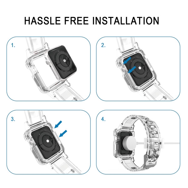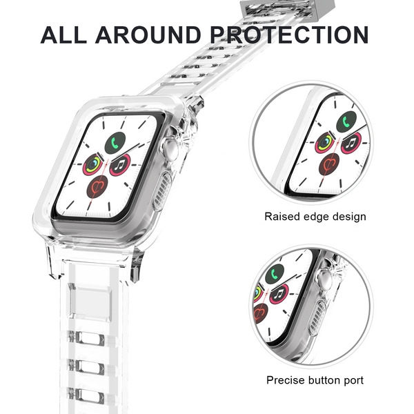Let your customers see that the Sheer Clear Series Watchband and Case is the ideal combination of comprehensive protection and minimalist sophistication for their 44mm Apple Watch. It is available in attractive packaging that makes it stand out on the shelf and shows off the product beautifully, making it an ideal addition to your inventory. The translucent watchband and case design perfectly balance regal refinement and elegance on any wrist. With a stainless steel buckle, the silicone watchband is adjustable and adaptable to fit any wrist. It's waterproof and sweatproof, as well as washable. The raised bezel edges and bumpers of the watch case provide maximum protection against accidental falls, bumps, and scratches and add to its elegant appearance. Thanks to its sleek design, your customers can easily access all buttons charging and full-touch sensitivity without any obstructions. MyBat offers a limited one-year warranty for the Sheer Clear Series Watchband & Case - 44mm, ensuring the best quality, performance, and customer satisfaction. Features: For Apple Watch Series 1/2/3/4/5/6/SE/7 Translucent Finish High-Grade Silicone Protective Bumper Case Raised Bezel Edges Impact & Shock Protection Stainless Steel Buckle Suitable for All Wrist Sizes Comfortable, Lightweight Design Quick Installation & Removal 1-Year Warranty