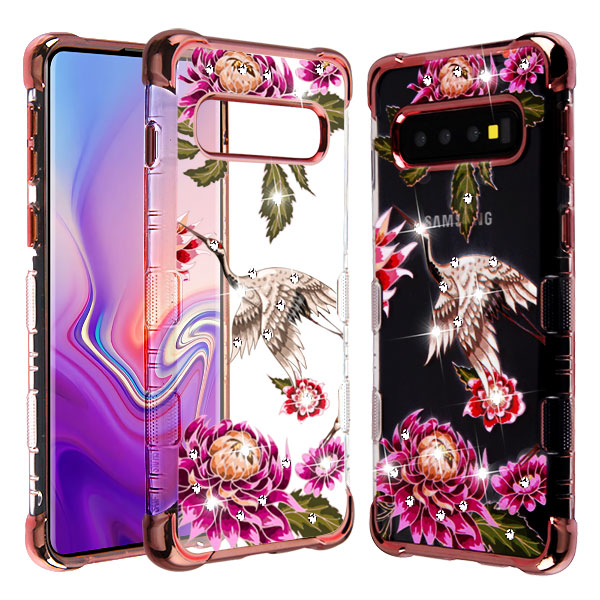 MyBat Diamante TUFF Klarity Lux Candy Skin Cover for Samsung Galaxy S10 - Rose Gold Plating / Crane