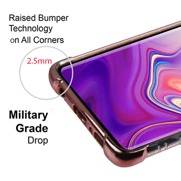 Premium-grade clear TPU case with electroplated bumper and ring accents Signature grip pads help to prevent the phone from slipping out of your hands Innovative air cushion design protects the phone’s corners from impact Flexible material can withstand twisting and folding without deforming Slim, form-fitting design offers bulk-free protection