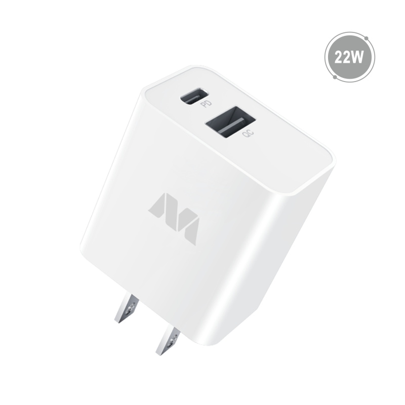 MyBat Dual Port Wall Charger (USB-A + USB-C 22W Power Delivery) - White