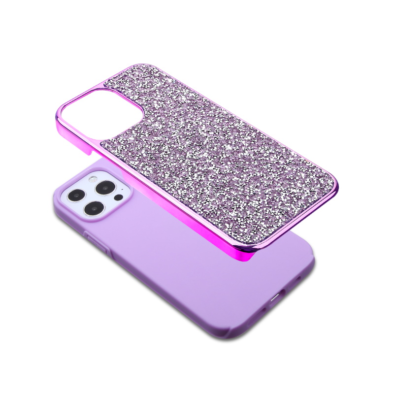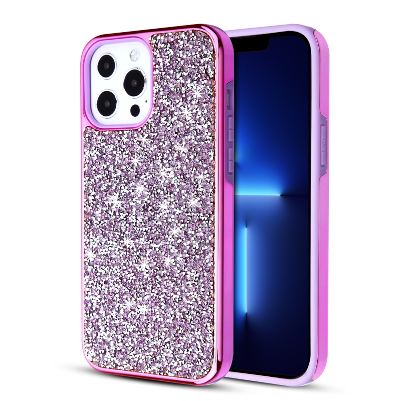 MyBat Encrusted Rhinestones Hybrid Case for Apple iPhone 13 Pro Max (6.7) - Electroplated Purple / Purple