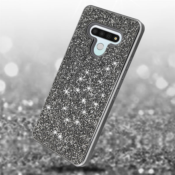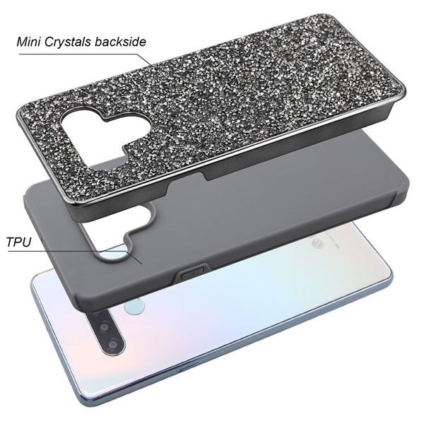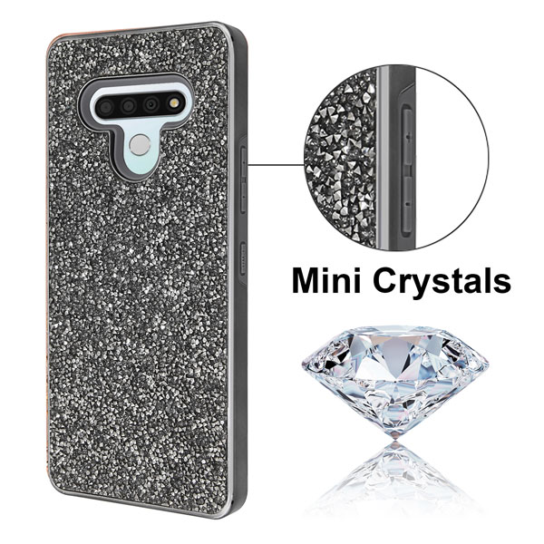 MyBat Encrusted Rhinestones Hybrid Case for Lg Stylo 6 - Electroplated Gun Metal / Iron Gray