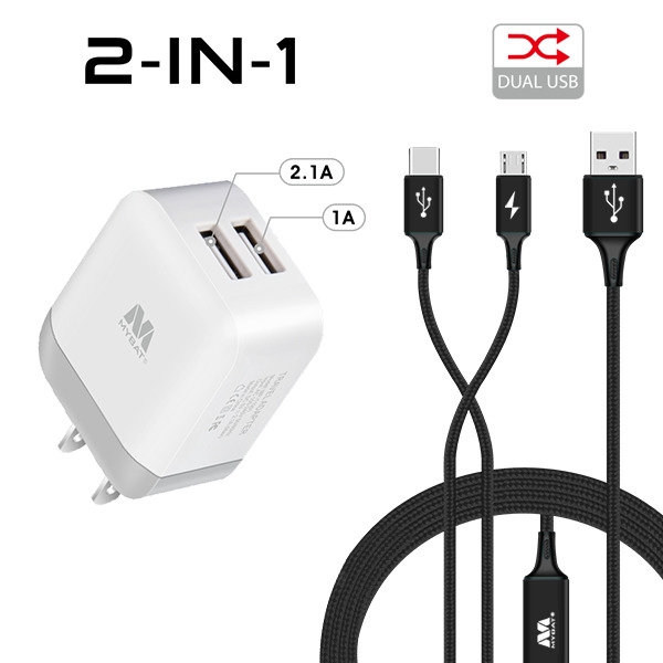 MyBat Fast Travel Charging Kit(Travel Charger & Type-C/Micro USB 2-in-1 Cable) - White / Black