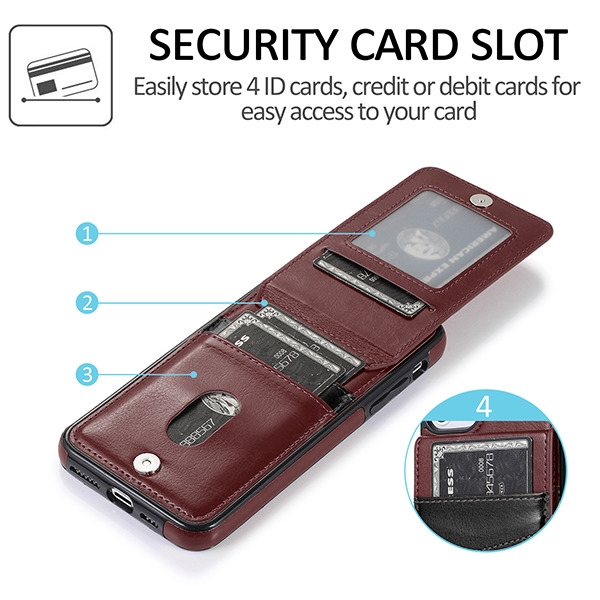 Premium faux leather wallet case with ample room for cash and 3 cards. Shock-absorbing TPU snap-on case cushions the phone from impact and drops Extended slots to conveniently store cards, ID, and cash without the added bulk Convenient ID window makes ID checks hassle free Magnetic closure ensures your cards and cash are securely tucked away Precise cutouts for camera, buttons and speakers