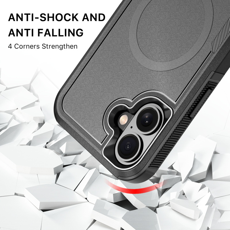 Built to withstand, designed to protect. The Fortress Series Case offers unbeatable protection with a sleek, rugged design. Engineered with hybrid construction, this case combines a durable hard shell with a shock-absorbing inner layer to shield your phone from drops, scratches, and everyday wear. MagSafe compatibility makes it easy to attach chargers and accessories, ensuring you stay connected without compromising on protection. With reinforced corners and a textured grip, the Fortress Series keeps your device safe and secure, making it the perfect companion for those who value strength and reliability. Features: • Hybrid Dual-Layer Protection: Combines a hard exterior shell with a shock-absorbing inner layer for robust defense. • MagSafe Compatible: Effortlessly snap on MagSafe chargers and accessories for convenient charging and enhanced functionality. • Reinforced Corners: Extra protection at impact points to safeguard against drops and shocks. • Textured Grip: Non-slip sides provide a secure hold, preventing accidental slips. • Raised Edge Design: Protects the screen and camera from direct contact with flat surfaces. • Precision Cutouts: Allows easy access to all buttons, ports, and controls without removing the case. • Sleek & Rugged Design: Blends style with durability, offering a refined look that’s built for toughness.