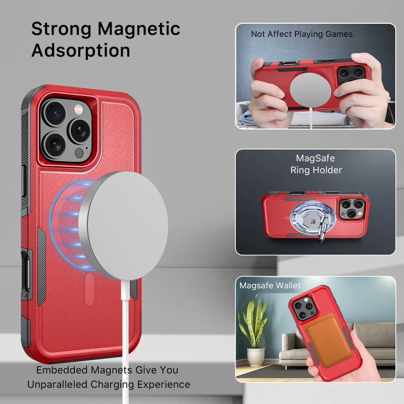 Built to withstand, designed to protect. The Fortress Series Case offers unbeatable protection with a sleek, rugged design. Engineered with hybrid construction, this case combines a durable hard shell with a shock-absorbing inner layer to shield your phone from drops, scratches, and everyday wear. MagSafe compatibility makes it easy to attach chargers and accessories, ensuring you stay connected without compromising on protection. With reinforced corners and a textured grip, the Fortress Series keeps your device safe and secure, making it the perfect companion for those who value strength and reliability. Features: • Hybrid Dual-Layer Protection: Combines a hard exterior shell with a shock-absorbing inner layer for robust defense. • MagSafe Compatible: Effortlessly snap on MagSafe chargers and accessories for convenient charging and enhanced functionality. • Reinforced Corners: Extra protection at impact points to safeguard against drops and shocks. • Textured Grip: Non-slip sides provide a secure hold, preventing accidental slips. • Raised Edge Design: Protects the screen and camera from direct contact with flat surfaces. • Precision Cutouts: Allows easy access to all buttons, ports, and controls without removing the case. • Sleek & Rugged Design: Blends style with durability, offering a refined look that’s built for toughness.