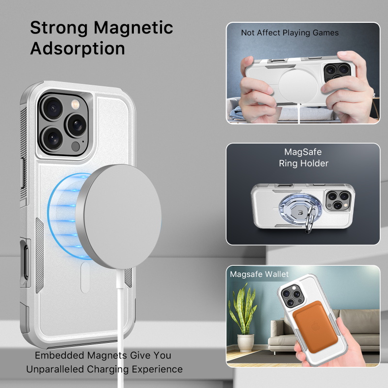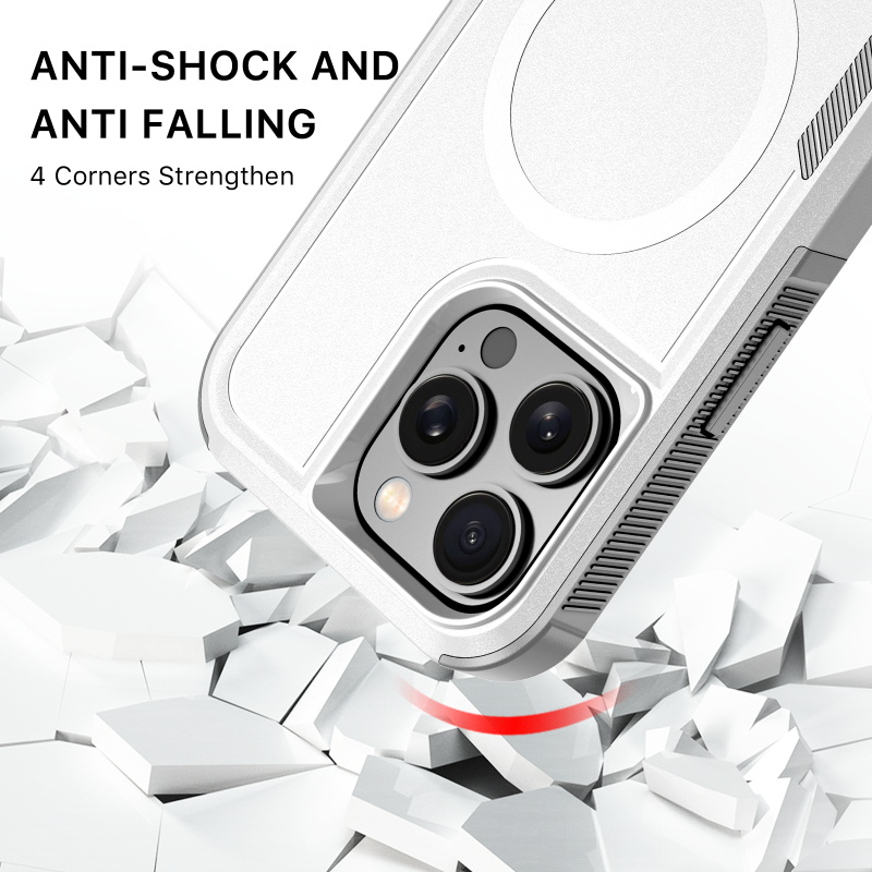 Built to withstand, designed to protect. The Fortress Series Case offers unbeatable protection with a sleek, rugged design. Engineered with hybrid construction, this case combines a durable hard shell with a shock-absorbing inner layer to shield your phone from drops, scratches, and everyday wear. MagSafe compatibility makes it easy to attach chargers and accessories, ensuring you stay connected without compromising on protection. With reinforced corners and a textured grip, the Fortress Series keeps your device safe and secure, making it the perfect companion for those who value strength and reliability. Features: • Hybrid Dual-Layer Protection: Combines a hard exterior shell with a shock-absorbing inner layer for robust defense. • MagSafe Compatible: Effortlessly snap on MagSafe chargers and accessories for convenient charging and enhanced functionality. • Reinforced Corners: Extra protection at impact points to safeguard against drops and shocks. • Textured Grip: Non-slip sides provide a secure hold, preventing accidental slips. • Raised Edge Design: Protects the screen and camera from direct contact with flat surfaces. • Precision Cutouts: Allows easy access to all buttons, ports, and controls without removing the case. • Sleek & Rugged Design: Blends style with durability, offering a refined look that’s built for toughness.