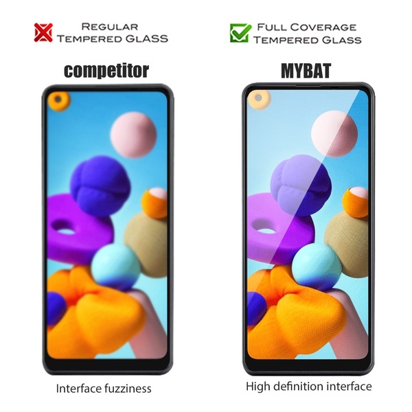 MyBat Full Coverage Tempered Glass Screen Protector for Samsung Galaxy A21 - Black