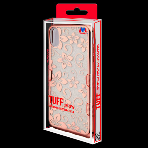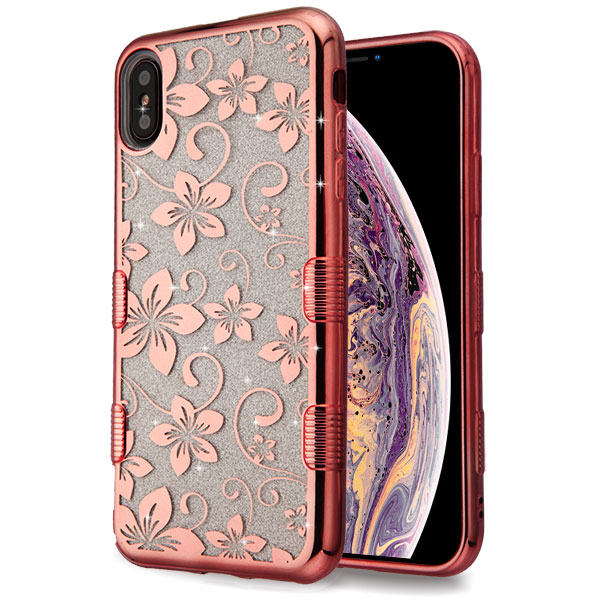 MyBat Full Glitter TUFF Series Case for Apple iPhone XS Max - Electroplating Rose Gold Hibiscus Flower (Transparent Clear)