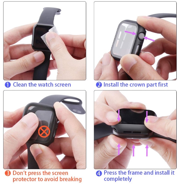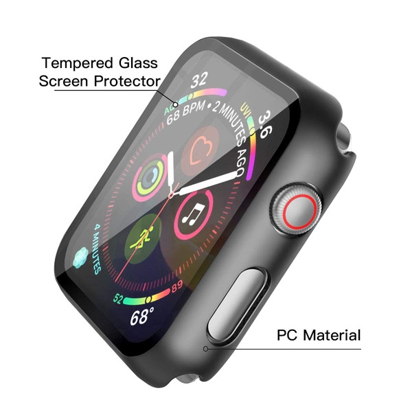 MyBat Fusion Protector Cover (with Tempered Glass Screen Protector) for Apple Watch Series 4 44mm/Watch SE (2022) 44mm / Watch SE 44mm - Black