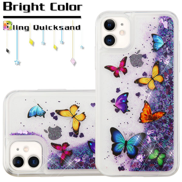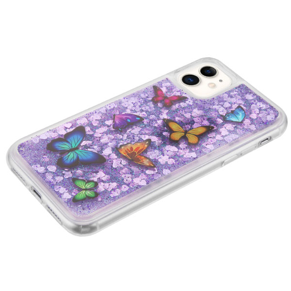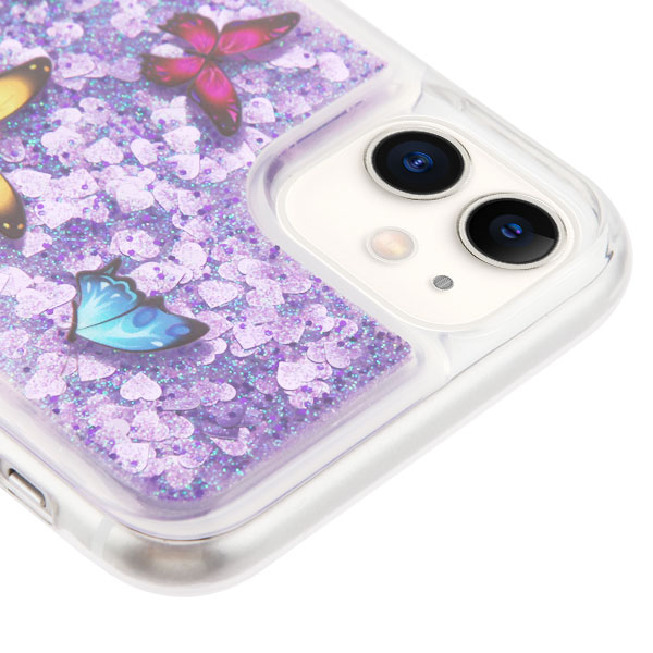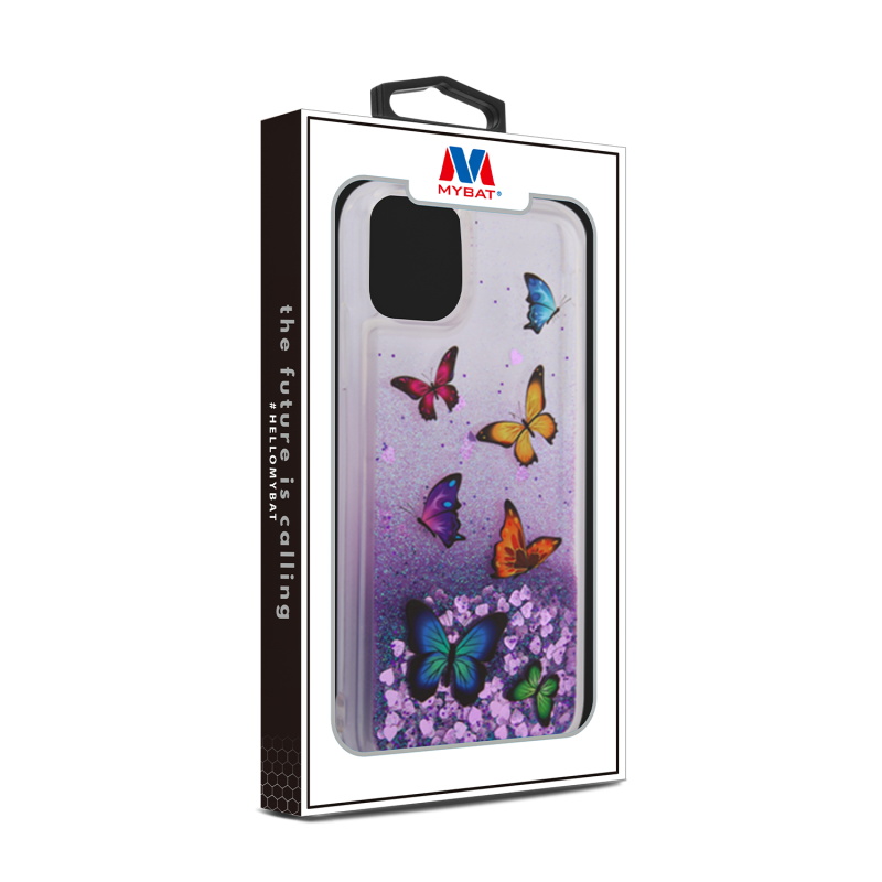 MyBat Glitter Hybrid Protector Cover for Apple iPhone 11 - Butterfly Dancing & Purple Quicksand (Hearts)