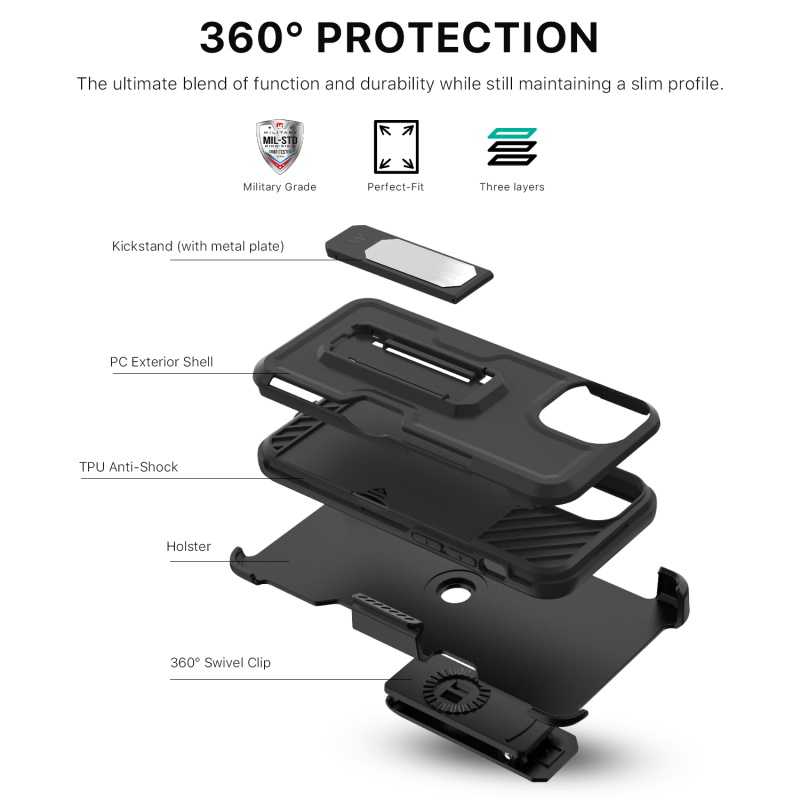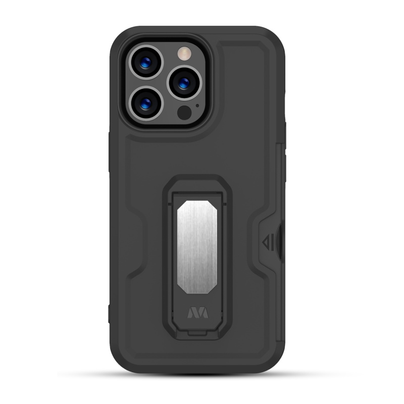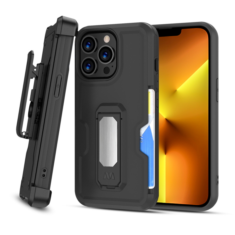 MyBat Grip Stand Protector Case Combo (with Black Holster)(with Card Wallet) for Apple iPhone 13 Pro (6.1) - Black / Black