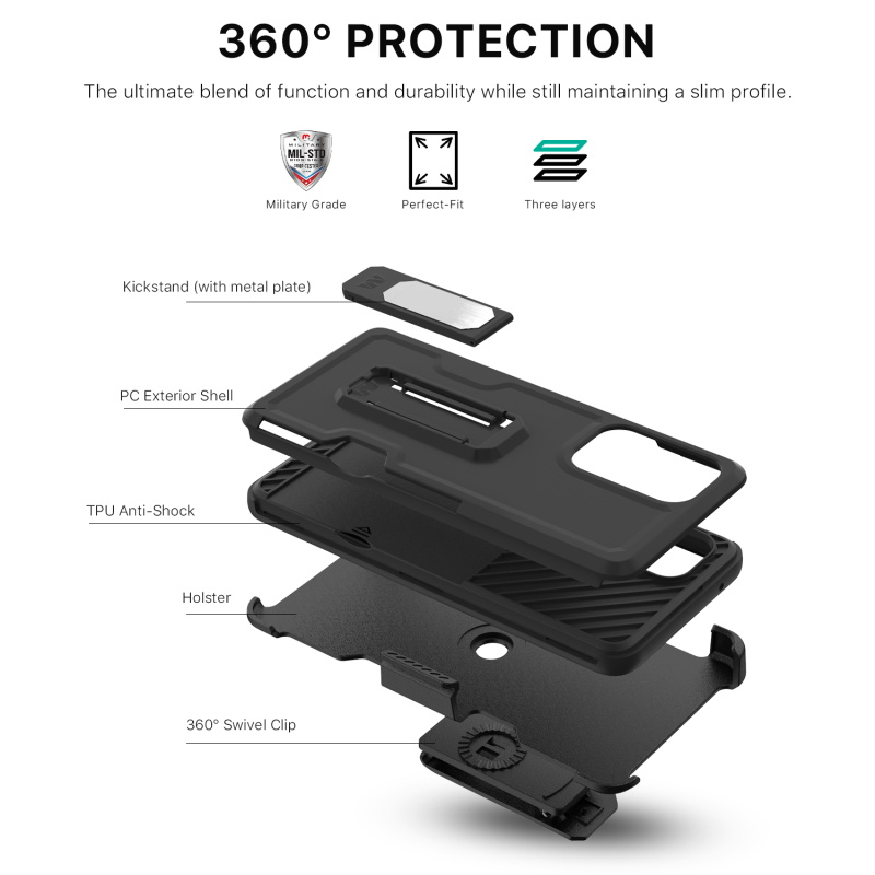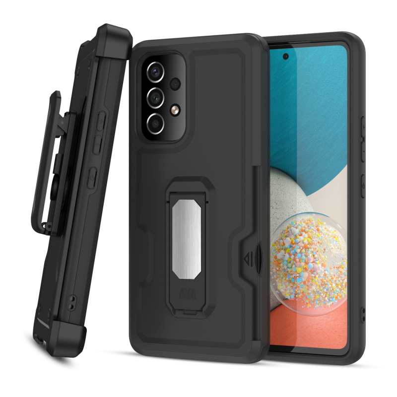 MyBat Grip Stand Protector Case Combo (with Black Holster)(with Card Wallet) for Samsung Galaxy A53 5G - Black / Black