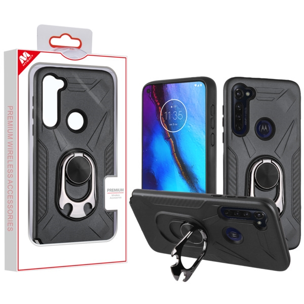 MyBat Hybrid Protector Cover (with Ring Holder Kickstand Bottle) for Motorola Moto G Stylus - Black / Black