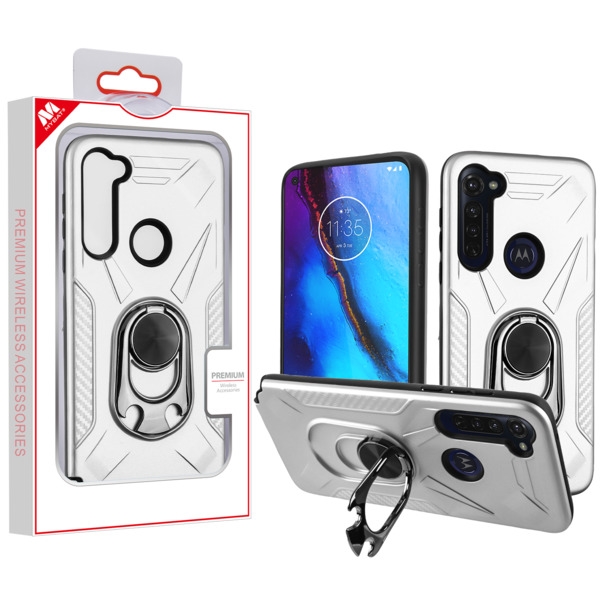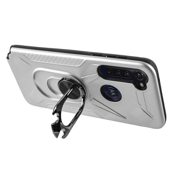 MyBat Hybrid Protector Cover (with Ring Holder Kickstand Bottle) for Motorola Moto G Stylus - Silver / Black
