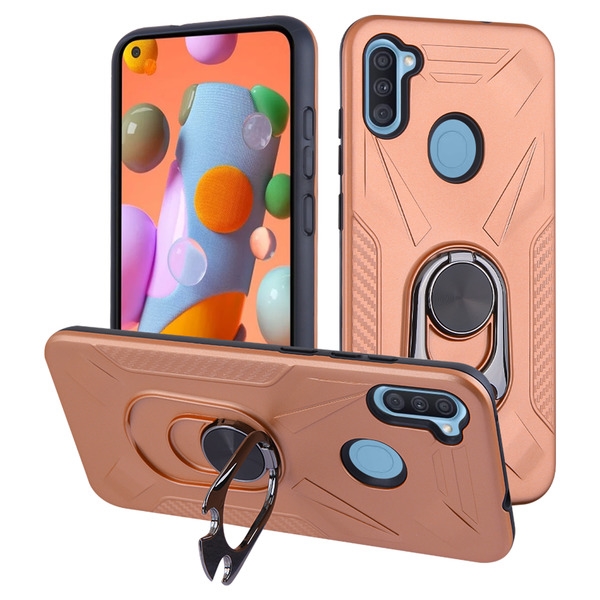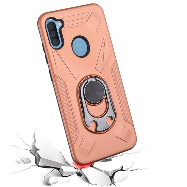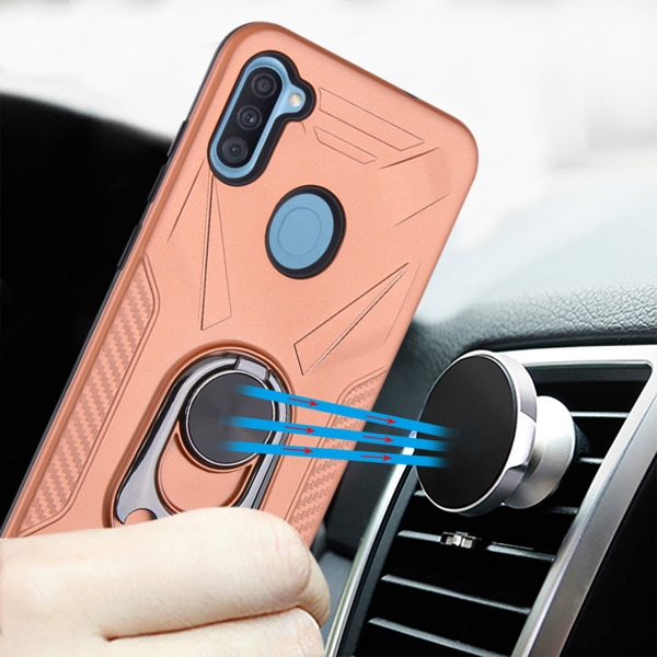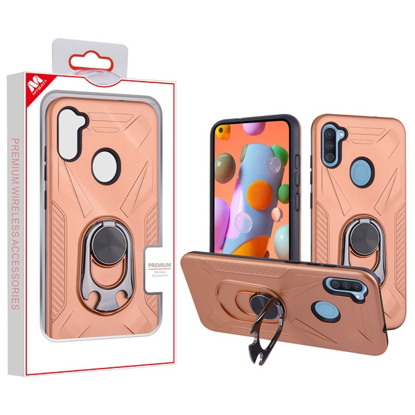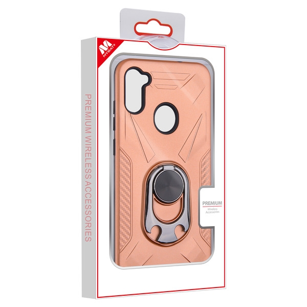 MyBat Hybrid Protector Cover (with Ring Holder Kickstand Bottle) for Samsung Galaxy A11 - Rose Gold / Black