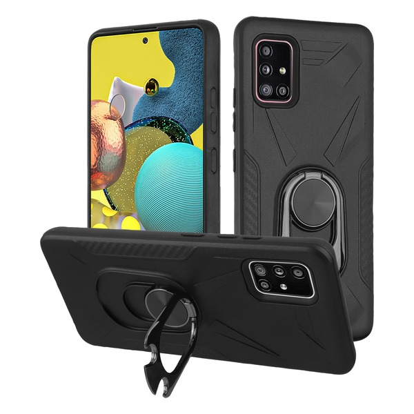 MyBat Hybrid Protector Cover (with Ring Holder Kickstand Bottle) for Samsung Galaxy A51 5G - Black / Black