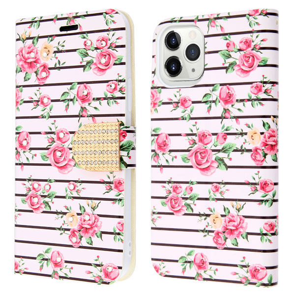 MyBat MyJacket Wallet Diamond Series for Apple iPhone 11 Pro Max - Pink Fresh Roses