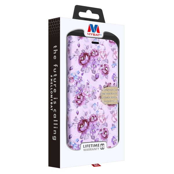 MyBat MyJacket Wallet Diamond Series for Apple iPhone 12 Pro Max (6.7) - Fresh Purple Flowers