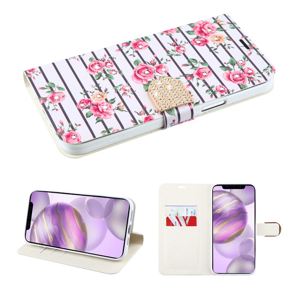 MyBat MyJacket Wallet Diamond Series for Apple iPhone 12 Pro Max (6.7) - Pink Fresh Roses