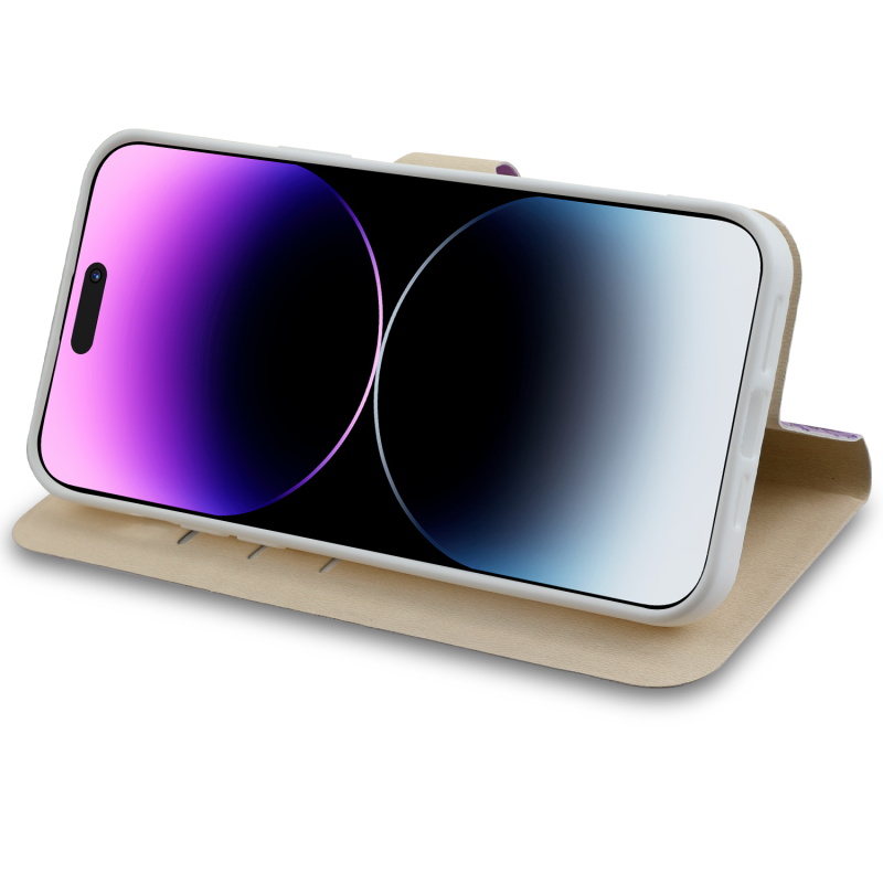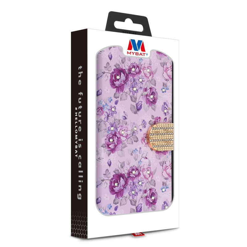 MyBat MyJacket Wallet Diamond Series for Apple iPhone 14 Pro (6.1) - Fresh Purple Flowers