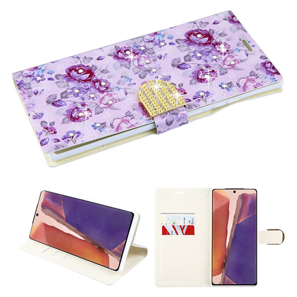 MyBat MyJacket Wallet Diamond Series for Samsung Galaxy Note 20 - Fresh Purple Flowers