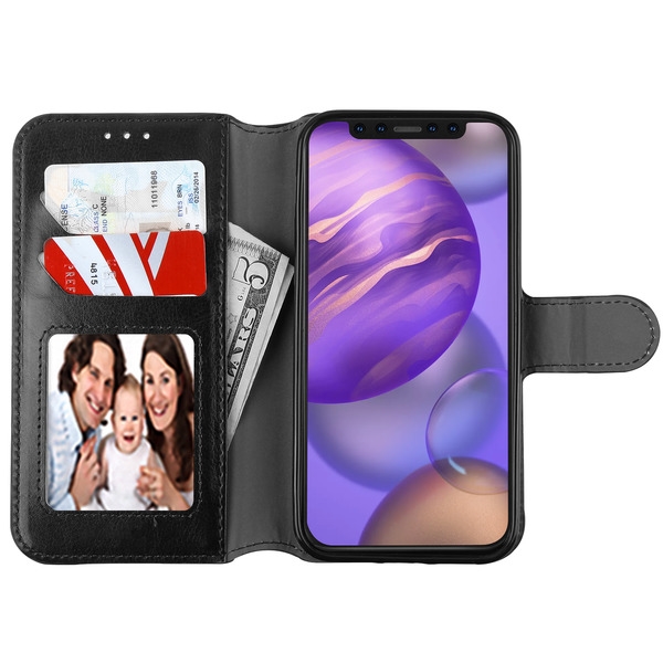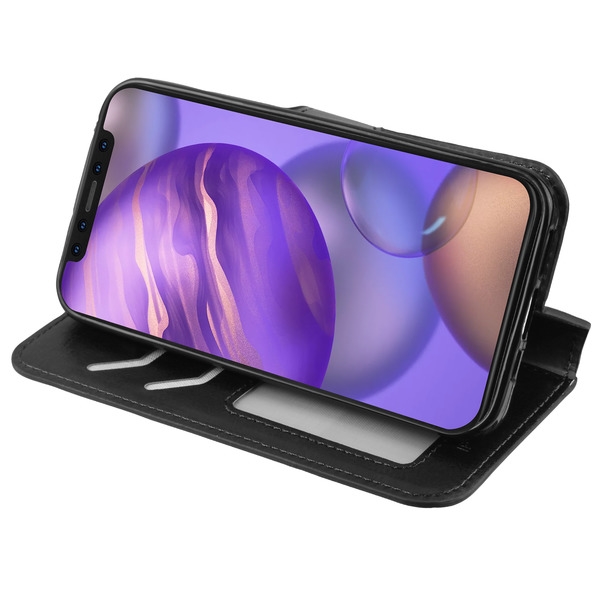 Book-style case with built-in TPU protector cover Smooth leatherette finish that is professional and sleek Includes multiple card slots and convenient money pocket Top cover transforms into a kickstand when folded back Precise cutouts for camera, buttons and speakers