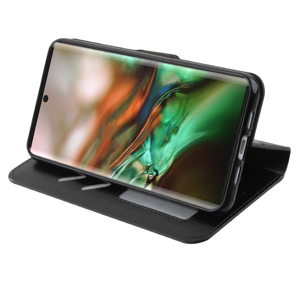 Book-style case with built-in TPU protector cover Smooth leatherette finish that is professional and sleek Includes multiple card slots and convenient money pocket Top cover transforms into a kickstand when folded back Precise cutouts for camera, buttons and speakers