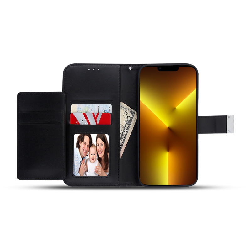 High-quality, protective wallet case for convenient storage of your smartphone, cards and cash Multiple card slots with additional inner flap can hold up to 5 cards Built-in TPU snap-on case keeps the device securely in place Precise cutouts allow quick access to all ports, buttons and camera hole Magnetic closure ensures your valuables are hidden, safe and secure