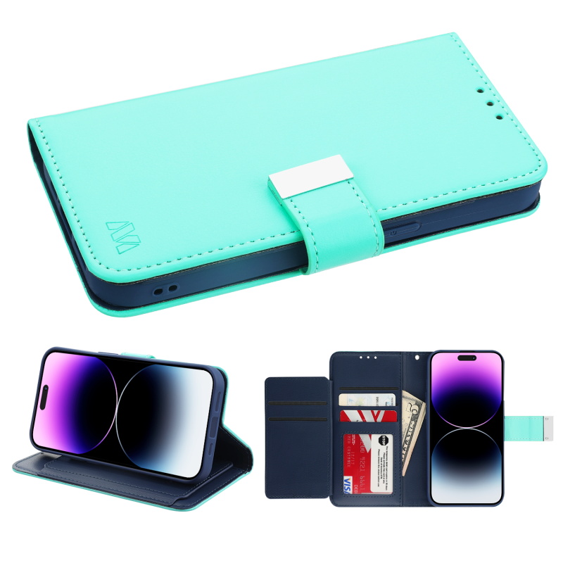 MyBat MyJacket Wallet Xtra Series for Apple iPhone 14 Pro Max (6.7) - Teal Green / Dark Blue