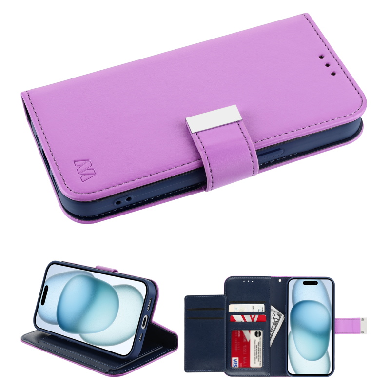 MyBat MyJacket Wallet Xtra Series for Apple iPhone 15 (6.1) - Purple / Dark Blue