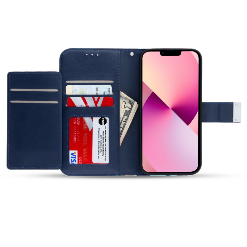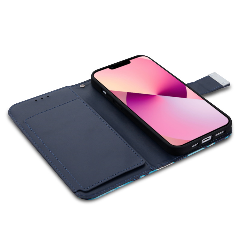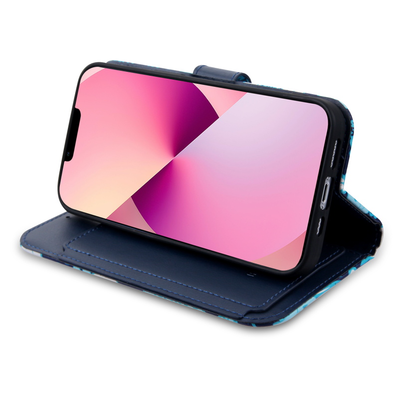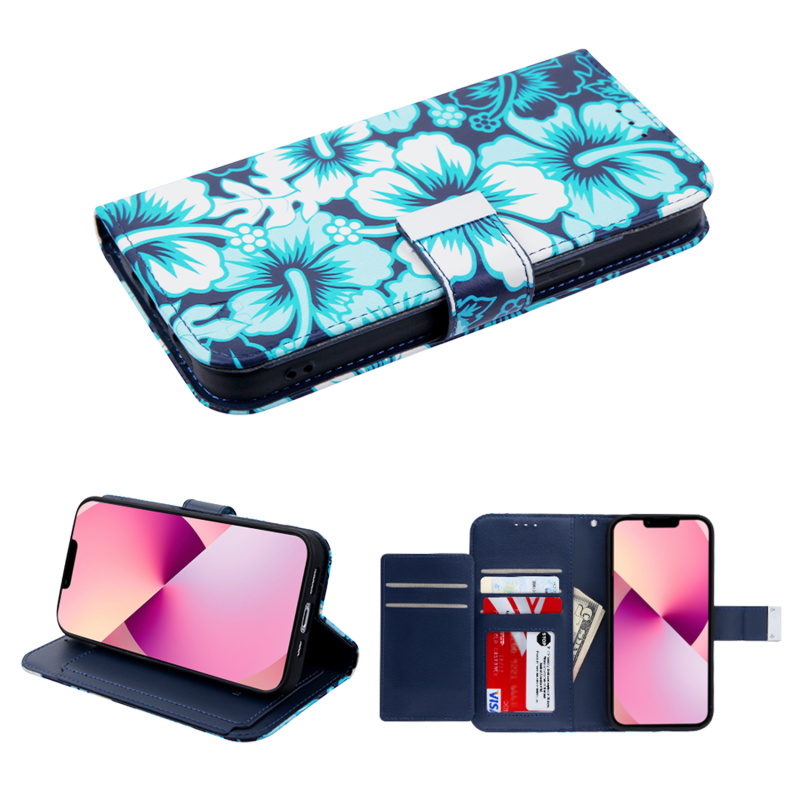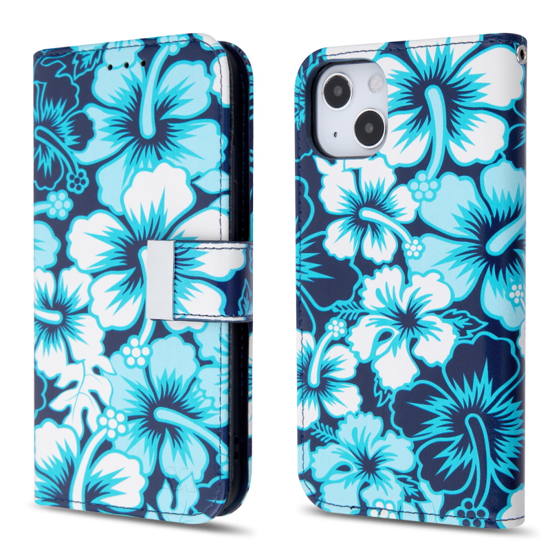 MyBat MyJacket Wallet Xtra Series with RFID Blocking for Apple iPhone 13 (6.1) - Blue Hibiscus