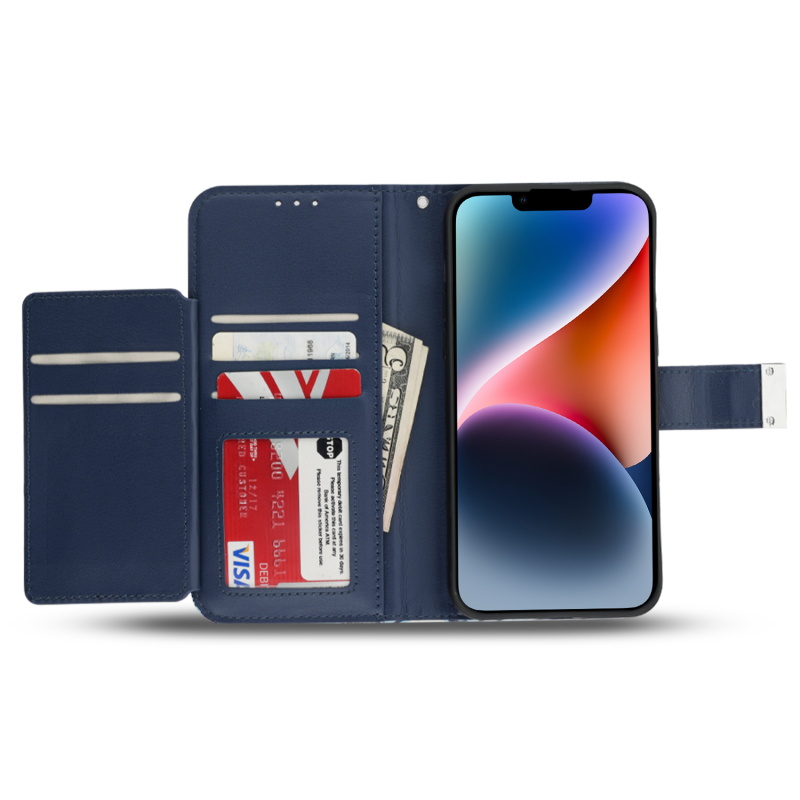 High-quality, protective wallet case for convenient storage of your smartphone, cards and cash Multiple card slots with additional inner flap can hold up to 5 cards Built-in TPU snap-on case keeps the device securely in place Precise cutouts allow quick access to all ports, buttons and camera hole Magnetic closure ensures your valuables are hidden, safe and secure
