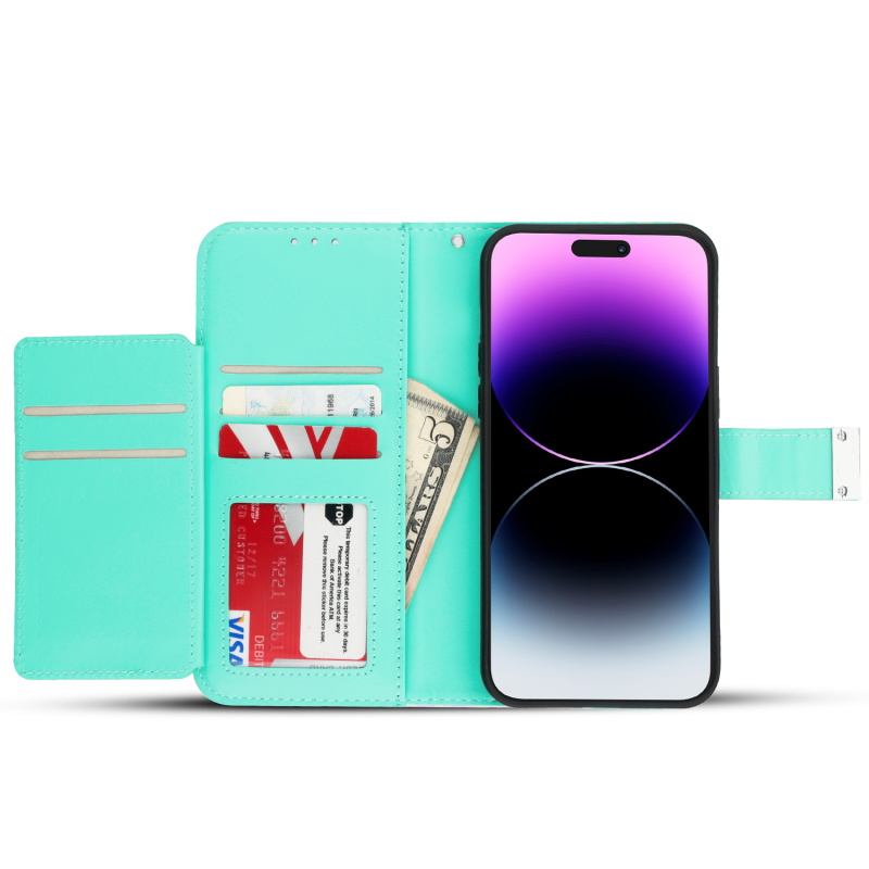 High-quality, protective wallet case for convenient storage of your smartphone, cards and cash Multiple card slots with additional inner flap can hold up to 5 cards Built-in TPU snap-on case keeps the device securely in place Precise cutouts allow quick access to all ports, buttons and camera hole Magnetic closure ensures your valuables are hidden, safe and secure