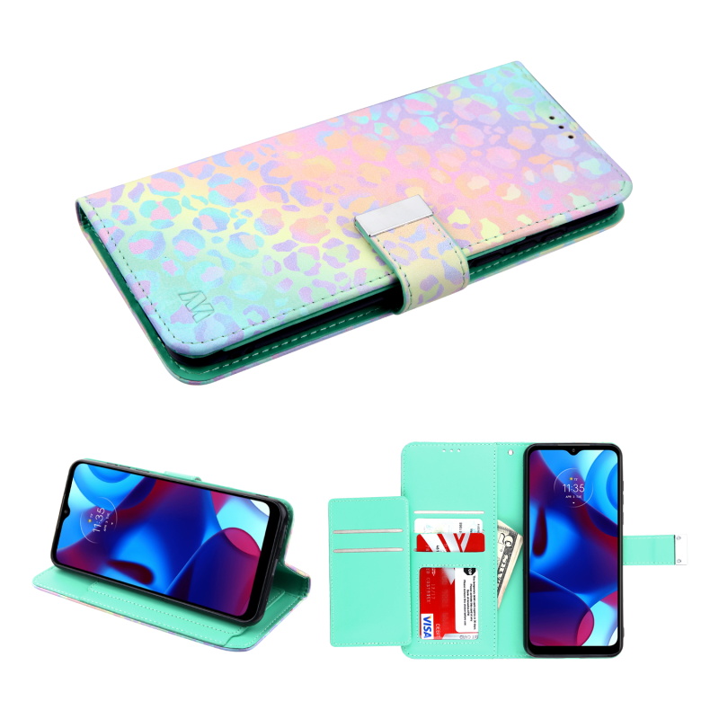 MyBat MyJacket Wallet Xtra Series with RFID Blocking for Motorola Moto G Pure / Moto G Power (2022) - Holographic Leopard