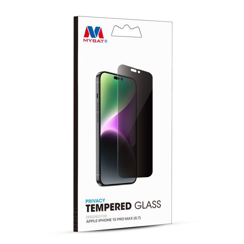 MyBat Privacy Tempered Glass Screen Protector (2.5D) for Apple iPhone 15 Pro Max (6.7) - Clear